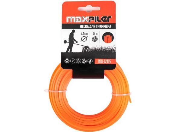 Леска для триммера MAXPILER 2.4мм*15м, КВАДРАТ картон