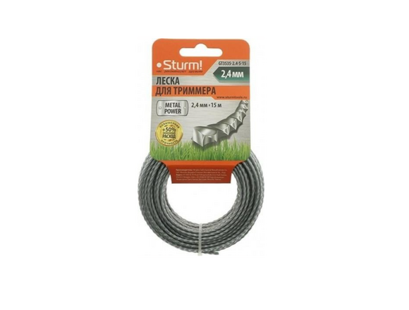 Леска для триммера ПРОФИ STURM 2,4мм*15м КРУЧЁНЫЙ КВАДРАТ УСИЛЕННЫЙ ОРАНЖ/ЗЕЛЁНАЯ картон(14/168)