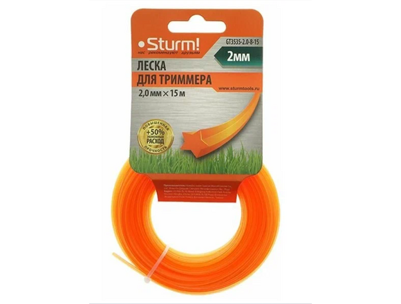 Леска для триммера ПРОФИ STURM 3,0мм*15м УСИЛЕННЫЙ КРУЧЁНЫЙ КВАДРАТ ОРАНЖ/ЗЕЛЁНАЯ картон (10/120)