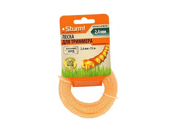 Леска для триммера ПРОФИ STURM 2,4мм*15м КРУЧЕНЫЙ КВАДРАТ С ЖИЛОЙ картон(10/120)