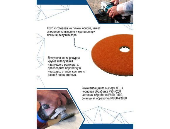 Круг алмазный гибкий шлифовальный vertextools 12500-1500 предназначен для ручных шлифовальных машин. Применяется для мокрой обработки плоских и криволинейных поверхностей бетонных конструкций, натурального камня, изделий из мрамора и гранита.
