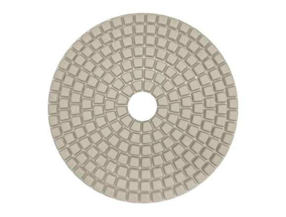 Круг изготовлен на гибкой основе из связки полимеров, алмазной крошки, металлов и крепится при помощи липучки. Используется при подаче охлаждающей жидкости и не оставляет разводов на обрабатываемой поверхности.