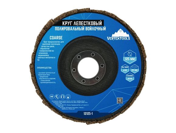 Круг лепестковый полировальный войлочный VERTEX 125*22мм COARSE (ГРУБЫЙ) (10/100)