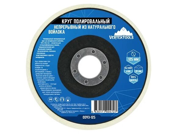 Круг полировальный непрерывный VERTEX из натурального войлока 125х22,2 (1/10/100)