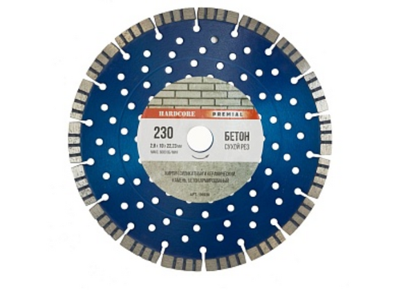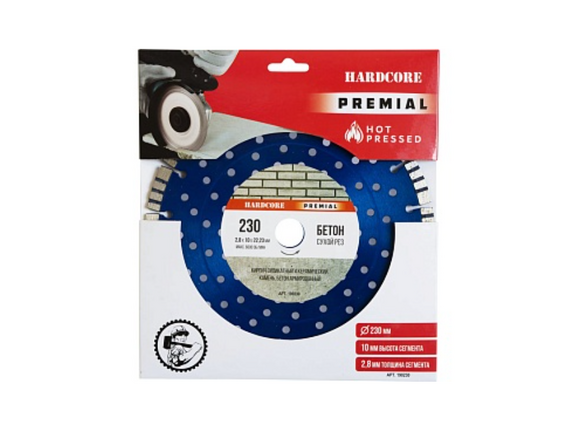 Диск алмазный HARDCORE PREMIAL "турбо-сегмент" 230х2,8х10х22,2мм БЕТОН (1/5/25)