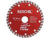 Алмазный диск турбо 180х22 мм Redchili 07-07-07-16 предназначен для резки железобетона, камня, мрамора, шамотного кирпича, песчаника, тротуарной плитки с помощью угловой шлифовальной машины.