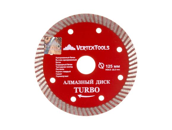 Диск алмазный турбо Vertextools 04-125-1 предназначен для резки бетона, кирпича, натурального и искусственного камня с помощью угловой шлифовальной машины. Турбированная конструкция диска и наличие компенсационных отверстий обеспечивают эффективный отвод пыли из зоны реза, высокую производительность и скорость обработки. Основание оснастки изготовлено из качественной инструментальной стали. Диск имеет длительный рабочий ресурс.