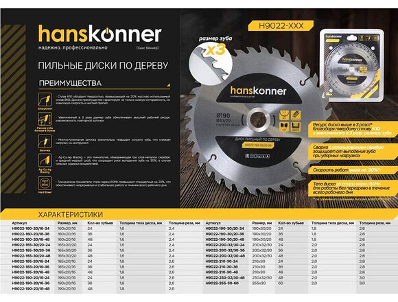 Диск пильный по дереву HANSKONNER PROFESSIONAL 185*20/16мм, 24 зубьев (5/25/50)