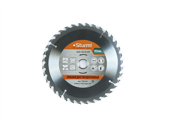Диск пильный (185x20 мм; 36 зубьев; переходное кольцо 16 мм) Sturm 9020-185-20-36T применяется для продольного и поперечного распила мягкой и твердой древесины, фанеры, ДСП, ламината, пластика и плитных материалов. Твердосплавные напайки из карбид вольфрама BK8 обеспечивают высокий рабочий ресурс. Усиленный и закаленный корпус изготовлен из стали 50.