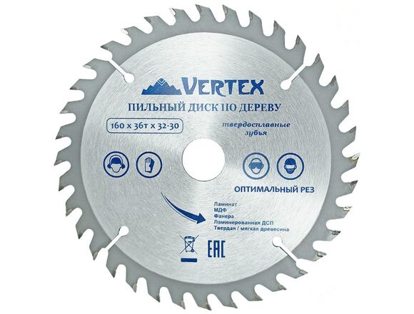Диск пильный по дереву VERTEX 160х36Тх32/30мм (1/50)