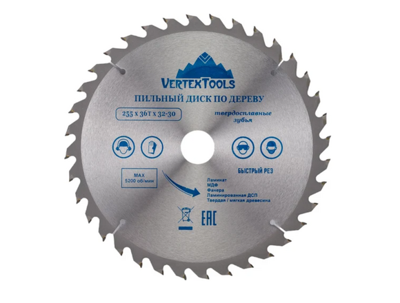 Диск пильный по дереву VERTEX 255х36Тх32/30мм (1/25)