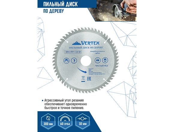 Диск пильный по дереву VERTEX 300х60Тх32/30мм (1/25)