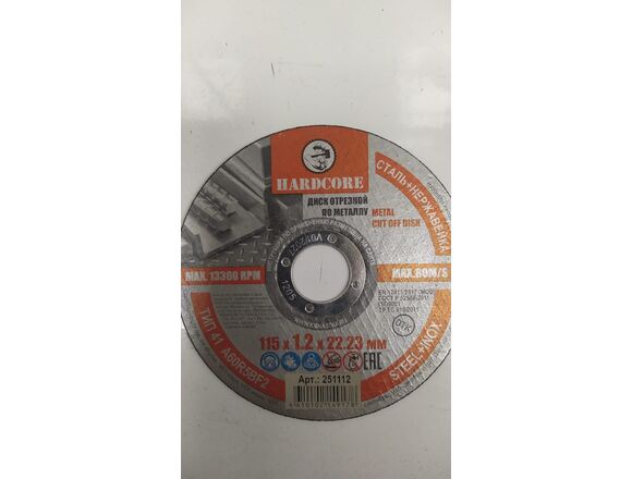 Круг отрезной по металлу и нержстали HARDCORE 125*1,2*22,2мм (10/50/600 )
