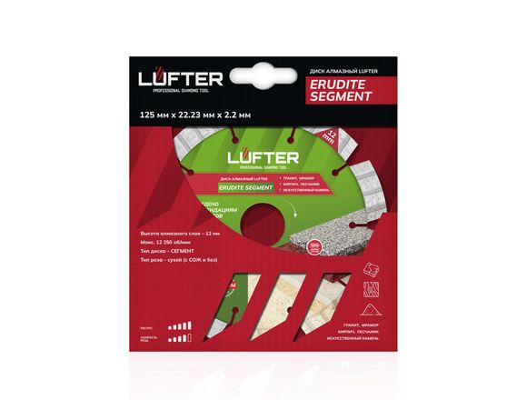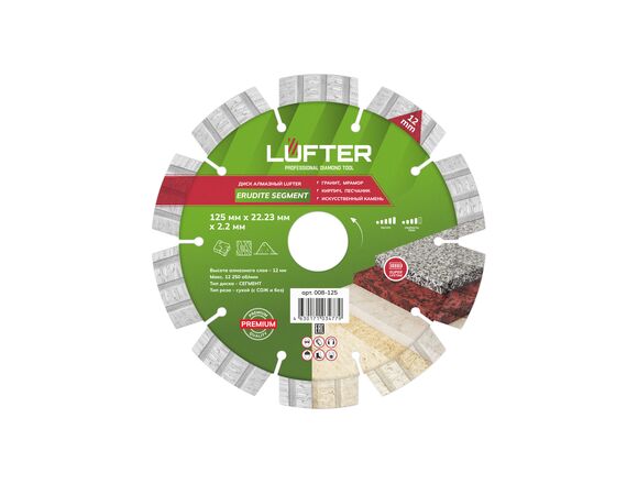 Диск алмазный LUFTER ERUDITE SEGMENT 230*2,6*22,2*12мм ГРАНИТ МРАМОР КАМЕНЬ ПЕСЧАНИК(10/30)