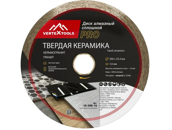 Диск алмазный VERTEXTOOLS PRO 200*25,4*1,6мм КЕРАМОГРАНИТ (1/10/30)