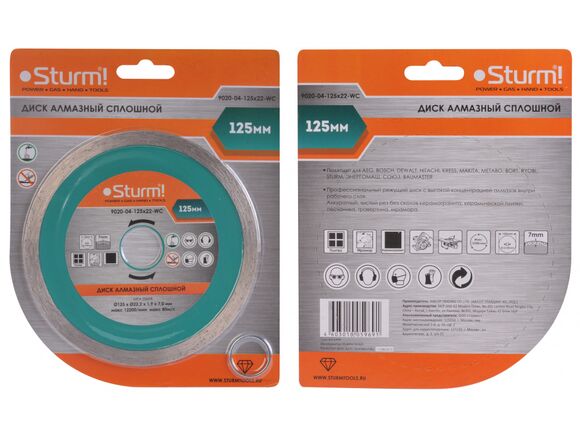 Диск алмазный STURM Сплошной 125*22,2мм влажный рез (50/100)