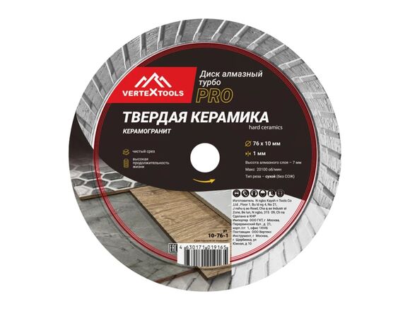 Диск алмазный VERTEXTOOLS PRO 76*10*1 сухой (с СОЖ и без) (10/100)