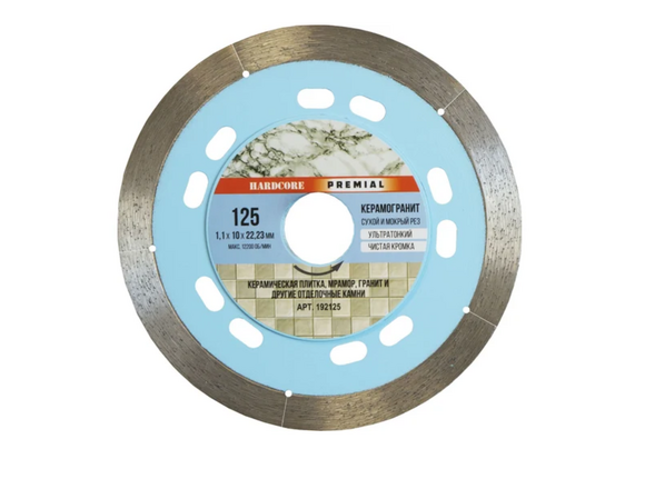 Диск алмазный HARDCORE PREMIAL 125*1,1*22,2мм сплошной УЛЬТРАТОНКИЙ (Керамогранит) (1/10/100)