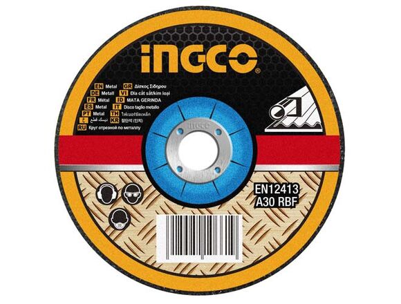 Круг зачистной по металлу 125x6.0x22 мм, A 24 RBF INGCO MGD601251 применяется совместно с угловыми шлифовальными машинами для обработки металлических изделий.
