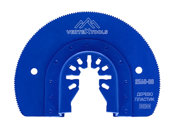 Насадка пильная универсальная 88 мм, биметаллическая, быстросъемная, сегментная vertextools 2560-88 изготовлена из высококачественной биметаллической стали на автоматизированных производственных линиях с применением новейших методов шлифовки, разводки и заточки зубьев.