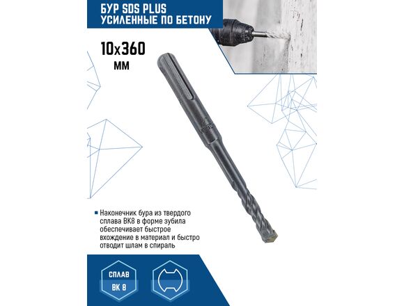 Бур SDS-plus Vertextools 999-10-360 предназначен для перфораторов с системой крепления SDS-plus. Применяется для бурения сквозных/глухих отверстий в кирпиче, бетоне.
