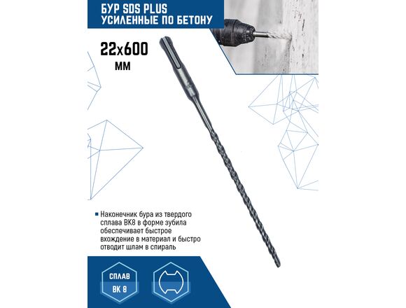 Бур SDS-plus Vertextools 999-22-600 предназначен для перфораторов с системой крепления SDS-plus. Применяется для бурения сквозных/глухих отверстий в кирпиче, бетоне.