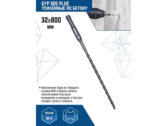 Бур SDS-plus Vertextools 999-32-800 предназначен для перфораторов с системой крепления SDS-plus. Применяется для бурения сквозных/глухих отверстий в кирпиче, бетоне.