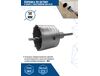 Коронка в сборе по бетону (50 мм; М22) Vertextools 222-0050 изготовлена из углеродистой стали. Для твёрдосплавных зубьев используется сплав марки ВК8. На внешней поверхности коронки имеется специальная спиральная канавка для вывода продуктов сверления, что позволяет снизить нагрузку на перфоратор.