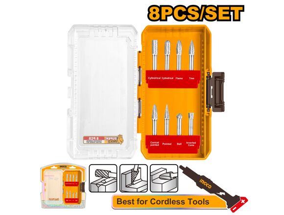 Набор фрез тверд по МЕТАЛЛУ INGCO INDUSTRIAL 8шт, хв 6мм КЕЙС (1/24)