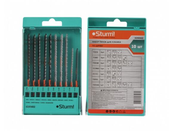 Набор пилок Sturm 5250502 используется с электролобзиками для выполнения различных пропилов в древесине мягких и твердых пород, фанере, пластике, ДСП, ДВП, столярных плитах. В наборе собраны различные пилки для широкого спектра работ.