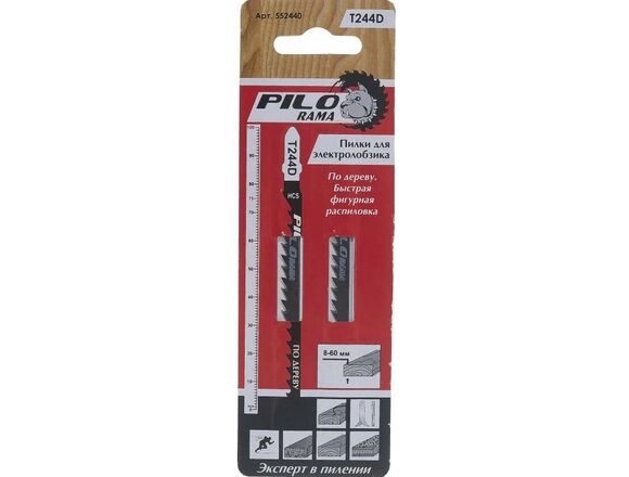 Пилки для лобзика PILORAMA T244D (2шт) 100*75мм дерево, ДСП, h=8-60мм, быстрый фигурный (10/100/400)