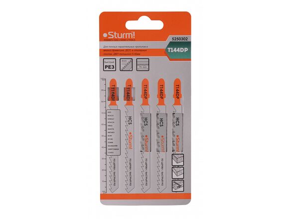 Пилки для лобзика STURM 144DР (5шт), точный параллельный рез 5-50мм древесина,ДСП,ДВП (50/400)