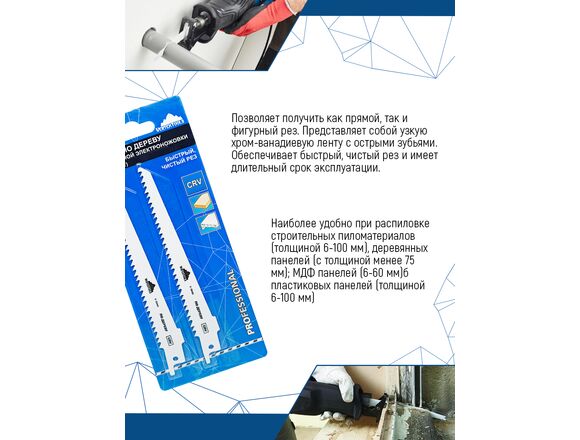 Полотно с переменным шагом зубьев используется в сабельных электроножовках для работы по мягкой и твердой древесине, обрезки деревьев. Изготовлено из высококачественной хромованадиевой стали, а зубья проходят специальную закалку. Подходит для выполнения быстрого и грубого реза.
