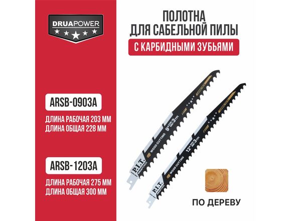 Пильное полотно для сабельных пил ARSB-0903A серии DRUA идеально подходит для работ по различным видам древесины, в том числе твердых пород.
