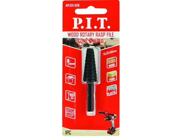 Шарошка стальная по дереву P.I.T. 13*32мм конусная удлиненная, хвостовик 6 мм