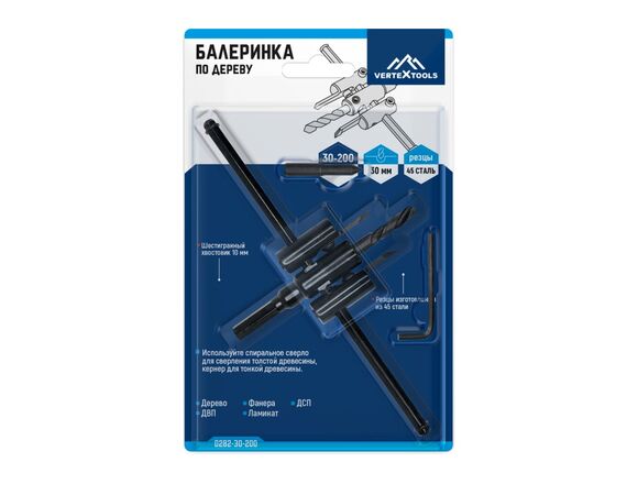 Сверло по дереву регулируемое VERTEXTOOLS 30-200мм "балеринка" (1/5/50)