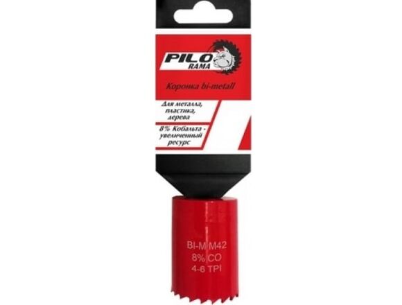 Коронка биметаллическая М42 Cobalt 8% Pilorama 570018 предназначена для электрических, аккумуляторных дрелей и сверлильных станков. Применяется для работы с изделиями из нержавеющей стали, алюминия, цветных металлов, дерева и гипсокартона. Режущие зубья изготовлены из биметаллического сплава с добавлением кобальта, что позволяет получить ровное и аккуратное отверстие без сколов и трещин. Сверление должно производиться в безударном режиме.
