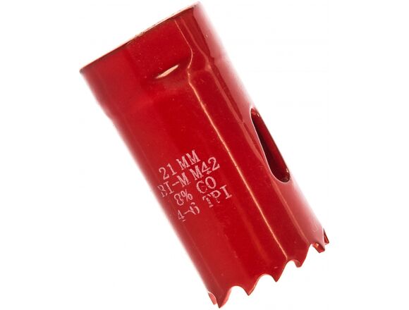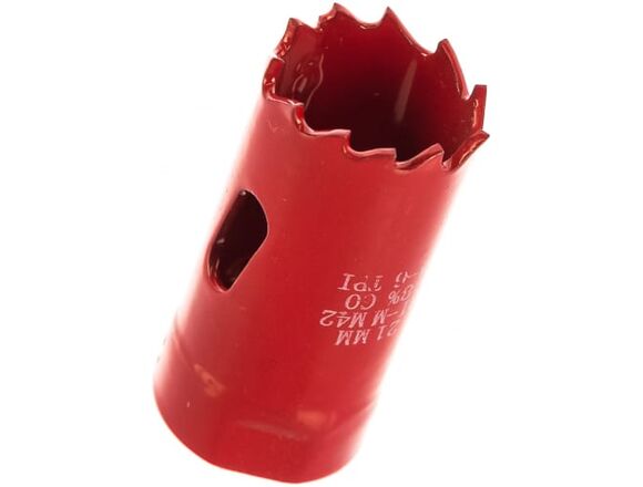 Коронка биметаллическая М42 Cobalt 8% Pilorama 570021 предназначена для электрических, аккумуляторных дрелей и сверлильных станков. Применяется для работы с изделиями из нержавеющей стали, алюминия, цветных металлов, дерева и гипсокартона. Режущие зубья изготовлены из биметаллического сплава с добавлением кобальта, что позволяет получить ровное и аккуратное отверстие без сколов и трещин. Сверление должно производиться в безударном режиме.