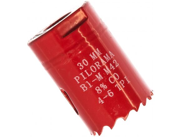 Коронка биметаллическая М42 Cobalt 8% Pilorama 570030 предназначена для электрических, аккумуляторных дрелей и сверлильных станков. Применяется для работы с изделиями из нержавеющей стали, алюминия, цветных металлов, дерева и гипсокартона. Режущие зубья изготовлены из биметаллического сплава с добавлением кобальта, что позволяет получить ровное и аккуратное отверстие без сколов и трещин. Сверление должно производиться в безударном режиме.