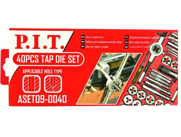 Набор метчиков и плашек P.I.T. 40шт М3-М12 М18/-27 +Т образ плашкодержатель+резьбомер