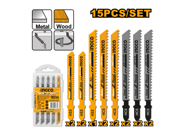 Набор пилок для лобзика INGCO 15шт (10 дерево + 5 металл) КЕЙС (20/80)