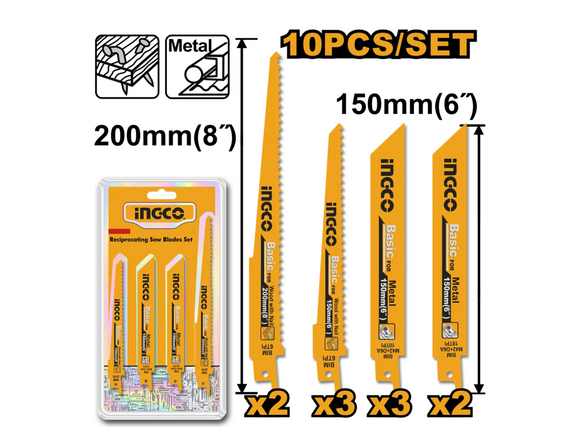 Полотна для сабельной пилы INGCO дерево-металл 10шт, 150-200мм (10/60)