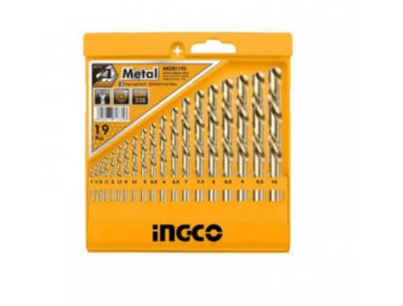 Набор сверл по металлу INGCO 19шт 1/1.5/2/2.5/3/3.5/4/4.5/5/5.5/6/6.5/7/7.5/8/8.5/9/9.5/10мм (10/40)