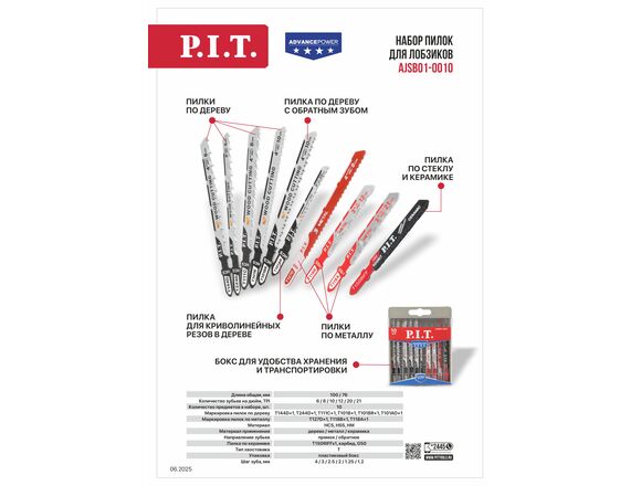 Набор пилок для лобзиков P.I.T. ADVANCE 10 шт, дерево/металл/керамика/фигур. рез, бокс