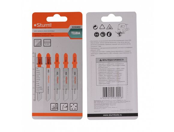 Пилки для лобзика STURM по металлу T118A 2шт,для прямолин.чист.реза метал. и мяг.стали (10/50/600)