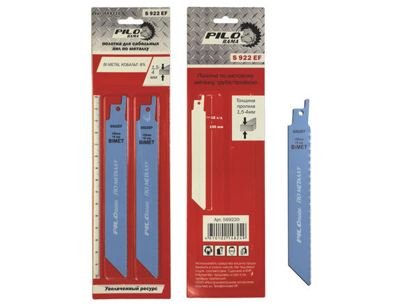 Полотно для сабельной пилы PILORAMA по металлу 150*19мм, 2шт (h=1,5-4мм 18TPI) S922EF (1/40/240)