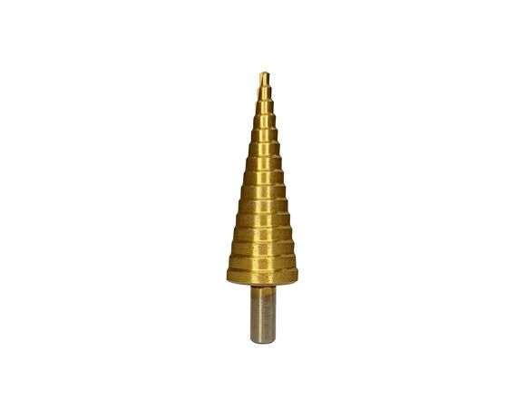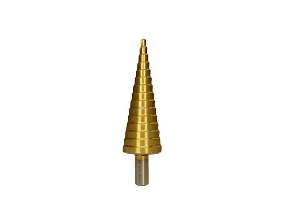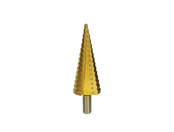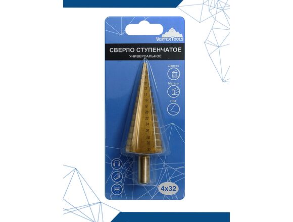 Сверло по металлу ступенчатое 4-32 мм vertextools 4-32 изготовлено из высококачественной быстрорежущей стали и предназначено для получения отверстий в листовых металлических и пластиковых материалах. Покрытие нитридом титана значительно увеличивает сопротивление перегреву во время сверления и срок службы сверла. Рекомендуется работать с использованием смазочно-охлаждающих жидкостей. Диаметр сверления 4-32 мм, шаг 2 мм. Размер хвостовика 10 мм.