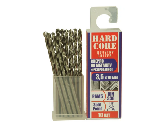 Сверло фрезерованное по металлу Industry cutter Р6М5, 3.5x70 мм, 10 шт Hardcore 146035 предназначено для дрелей. Используется для сверления отверстий в металле.