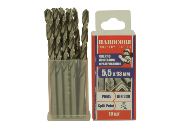 Сверло по металлу HARDCORE INDUSTRY CUTTER 5.5*93мм 10шт/уп, P6M5 ПЛАСТИК БОКС (1/20/120)