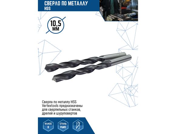 Сверло по металлу HSS vertextools 1122-1050 предназначено для сверлильных станков, дрелей и шуруповертов. Применяется для сверления сквозных/глухих отверстий в изделиях из металла. Изготовлено из инструментальной быстрорежущей стали. Сверло имеет крестообразные зубья и двойную насечку, что обеспечивает улучшенную обработку с минимальной вибрацией и образованием мелкой стружки.